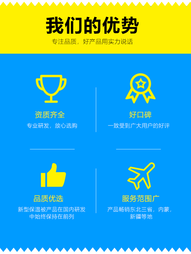 我們本著客戶之上,服務(wù)至上的原則,爭(zhēng)創(chuàng)國內(nèi)保溫被行業(yè)的引導(dǎo)者。